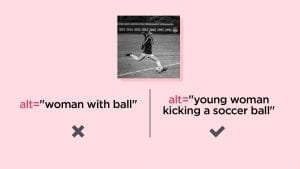 So for example, in the image below, bad alt text would just be “woman with ball.”